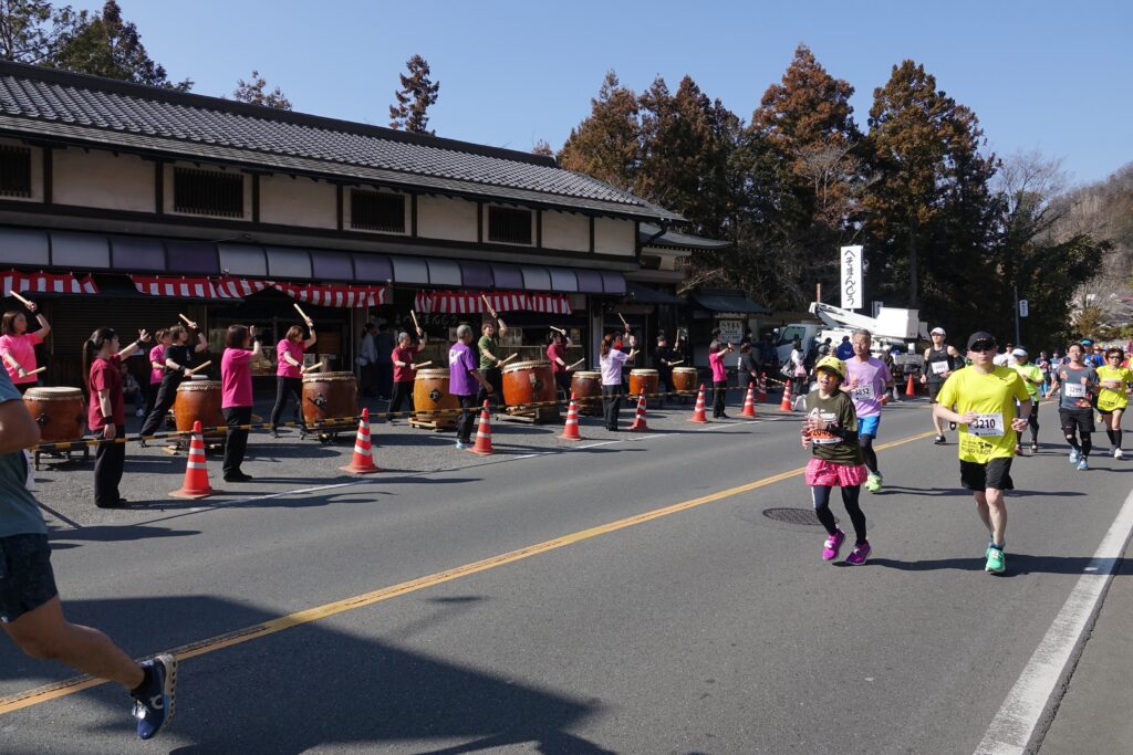 ランナーに向けて給水をしている場所があったり、太鼓を叩いて応援しているところがあったりと、街全体で大会を盛り上げている雰囲気があります。