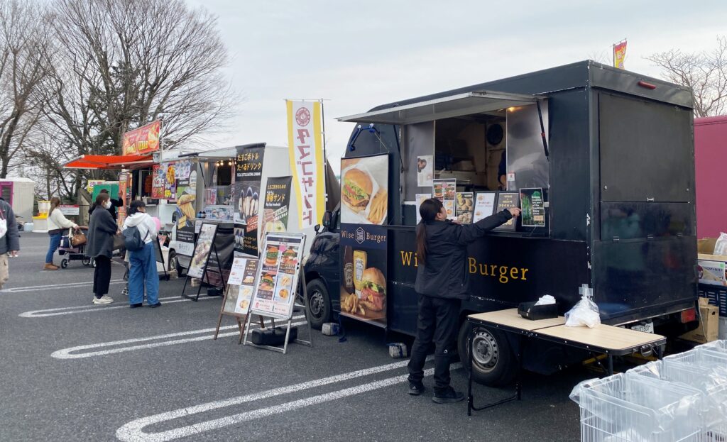 住友金属鉱山アリーナ青梅の駐車場でも、キッチンカーがずらりと並びます。
