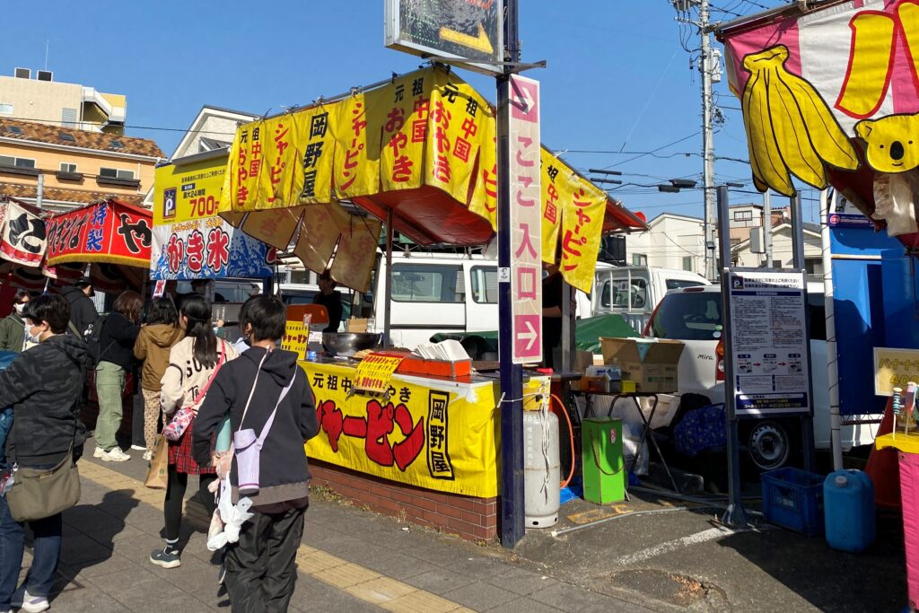 このあたりには屋台がたくさん並び、食べ物や地域のお土産などが販売されています。歩いていると、ちょっとしたお祭りのような雰囲気を感じて、歩いているだけでも楽しいです。
