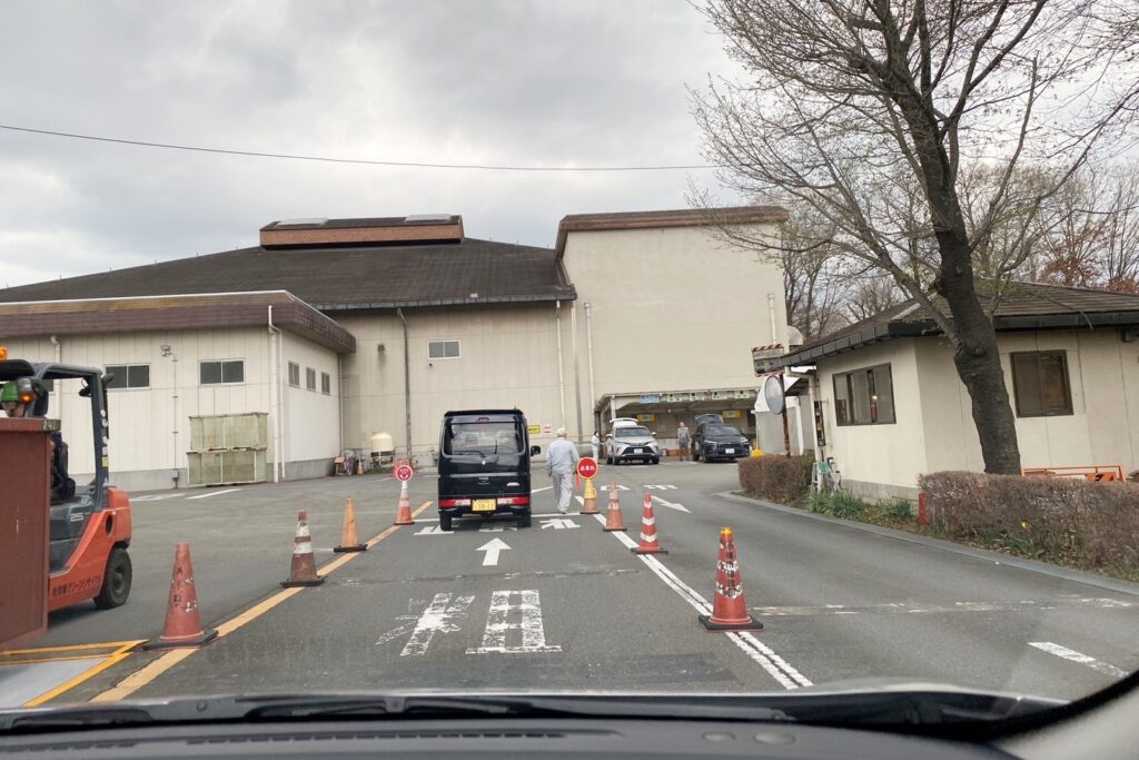 入口で交通誘導員の方に「粗大ごみでよろしいですか?」と声をかけてもらえるので、そのまま案内に従って車を進めます。