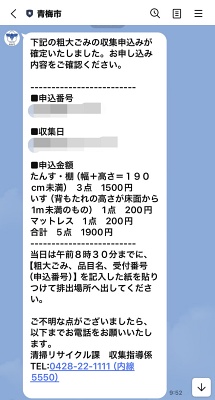 それが今では、青梅市のLINEアプリから粗大ごみの収集を申し込めるようになりました。すごい!